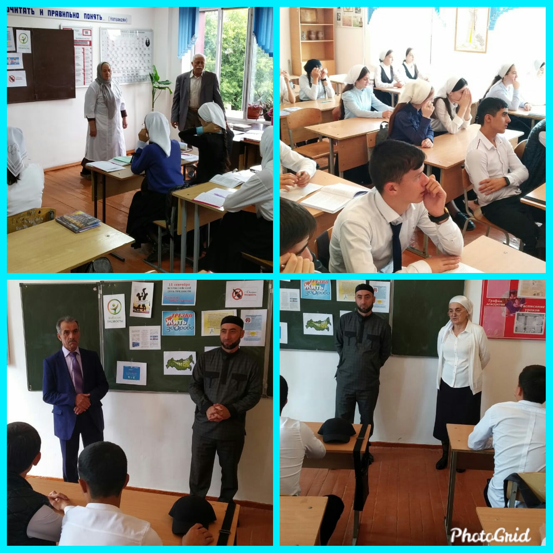 11.09.201911 сентября в школе были проведены мероприятия, посвященные Всероссийскому дню трезвости. В рамках мероприятий были проведены беседы с обучающимися по данной теме. Беседы провели педагог по ДНВ Тимиров Х.Х., социальный педагог школы Усаев Б.У., а также медицинская сестра Висаева Т.М.