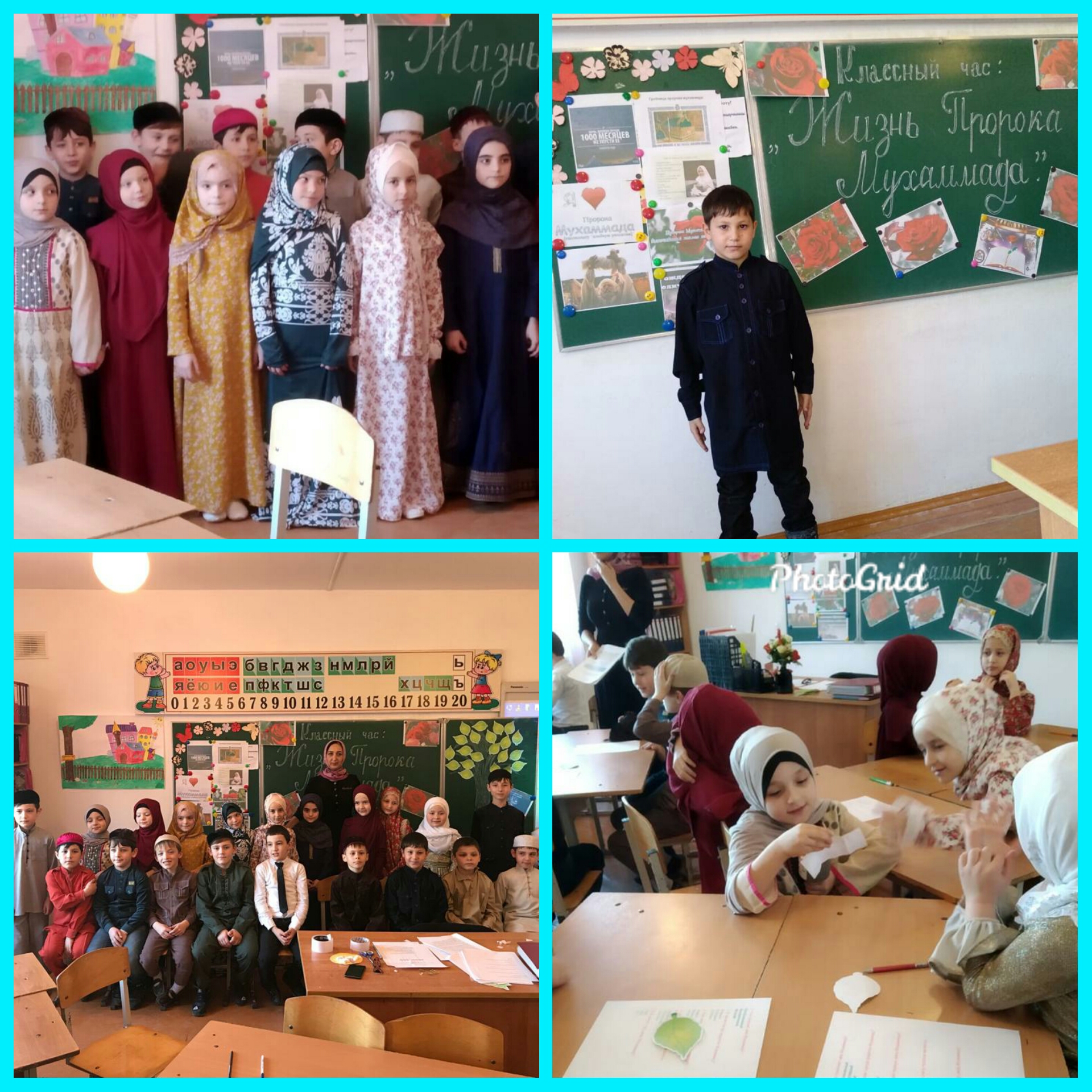 09.11.20199 ноября в 3 «в» классе был проведен открытый классный час «Жизнь Пророка Мухаммада» (С.А.С.). Классный час провела классный руководитель Хугаева М.Р. Эмоциональные выступления обучающихся, соответствующая мероприятию одежда, содержание мероприятия, оформление класса создали в классе праздничную атмосферу. Мероприятие прошло на должном уровне.