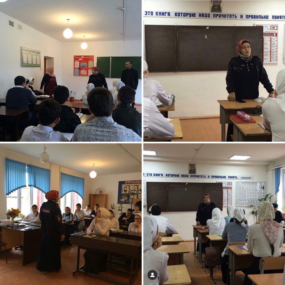 20.01.202020 января нашу школу посетила сотрудник ПДН Курчалоевского района Сулейманова А.Х. Она провела профилактическую беседу с обучающимися по вопросу посещаемости, внешнего вида и порядка. Также ученики были предупреждены на ношение телефонов в школу.