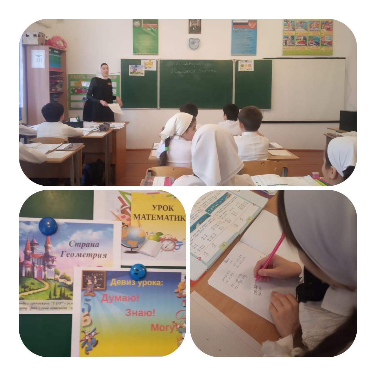 21.01.2020Учителем Зайнулаевой Иман был проведен открытый урок математики по теме "Прямоугольник". Урок построен в рамках системно – деятельностного подхода, развивает у учеников способности самостоятельно ставить учебную задачу, проектировать пути их реализации, контролировать и оценивать свои достижения. Использовались различные виды контроля: ученик – ученик (при групповой работе), самоконтроль, ученик – учитель (сравнение своей работы с образцом на доске.