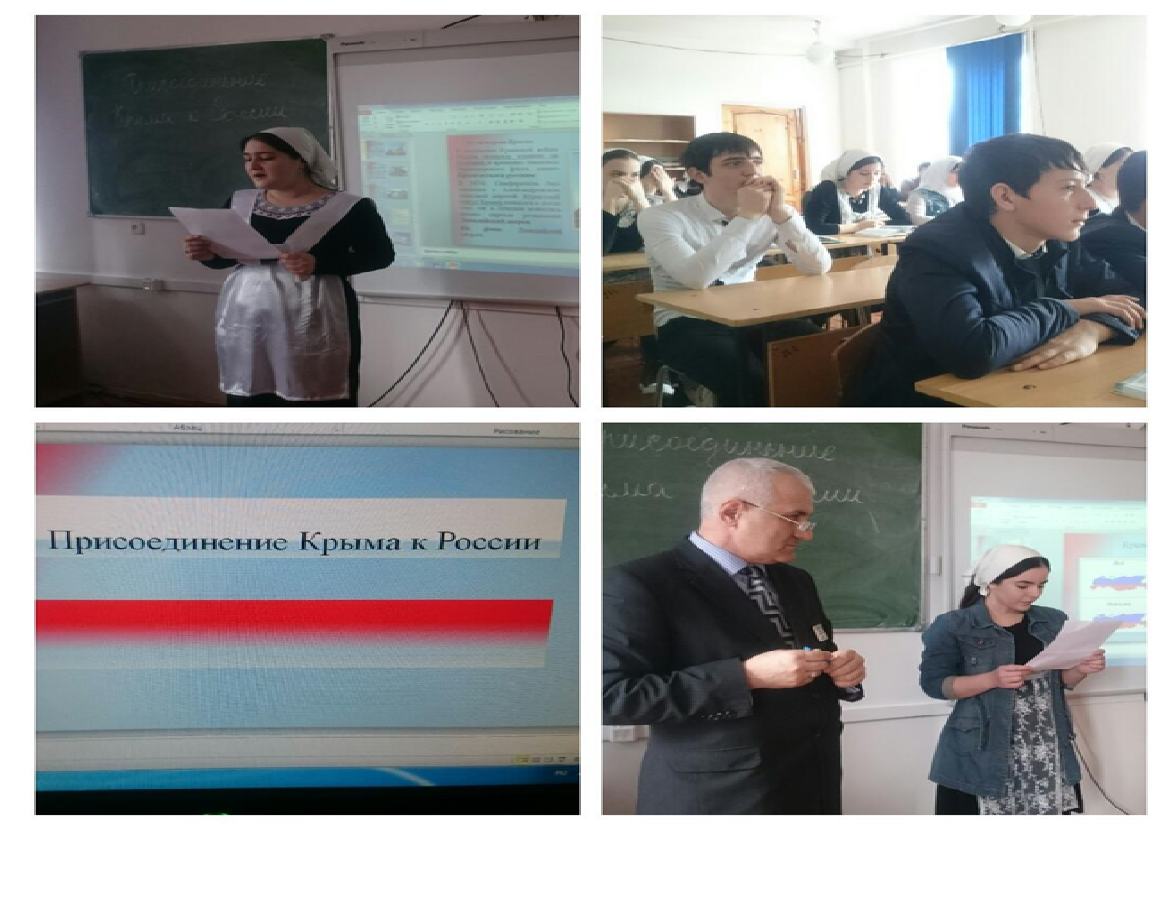 18.03.201618 марта 2016 года в девятых классах прошел урок, посвященный присоединению Крыма к России. Урок проводил учитель истории и обществознания Гапаев А.А.. Урок посвящен истории присоединения Крыма к России, а также подписанию договора о принятии в состав России Республики Крым, подписанного 18 марта 2014 года.