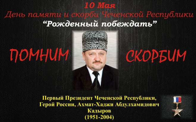 9 мая 2004 года наш народ пережил еще одно горе, трагически погиб лучший из сыновей чеченского народа, лидер борцов за истинный ислам, Герой России, первый Президент Чеченской Республики Ахмат-Хаджи Кадыров.