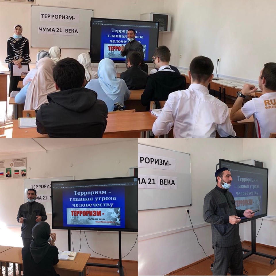 Сегодня Темиров Хусейн провёл беседу с учащимися 10 «Б» на тему«Терроризм-чума 21 века» .