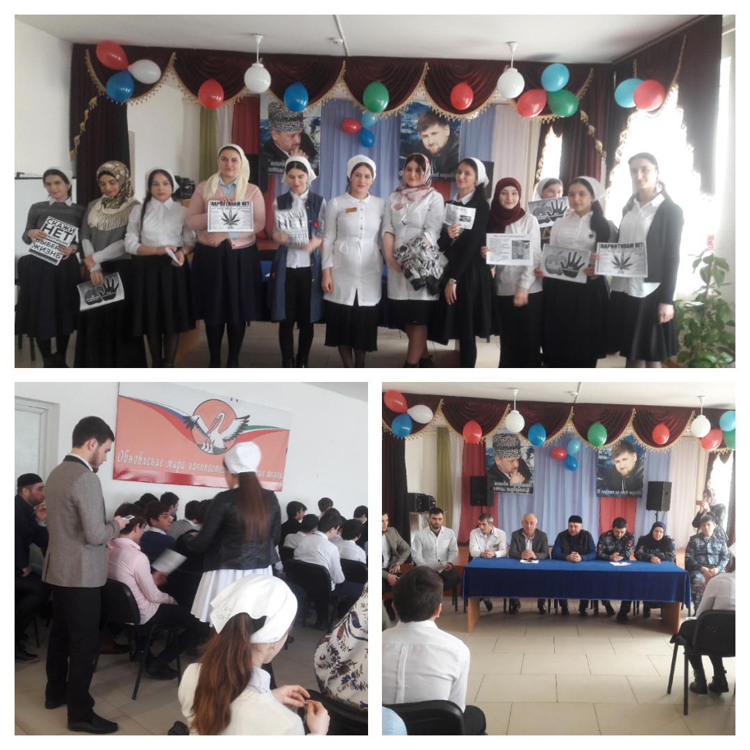 01.03.2018В 1987 году Генеральная Ассамблея ООН провозгласила этот день Международным днем борьбы с наркоманией и незаконным оборотом наркотиков. В связи с этим 1 марта 2018 года в школе была проведена встреча старшеклассников с представителями разных структур и организаций. На встрече присутствовали сотрудники различных организаций: сотрудник отдела по борьбе с наркотиками Администрации Курчалоевского района Абдулкеримов М.А., сотрудники ПДН Кучалоевского района, медицинские работники Курчалоевской ЦРБ.