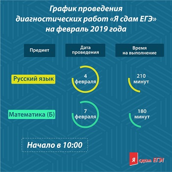 ДАТЫ ПРОВЕДЕНИЯ ДИАГНОСТИЧЕСКИХ РАБОТ ПО РУССКОМУ ЯЗЫКУ И МАТЕМАТИКЕ БАЗОВОГО УРОВНЯ В РАМКАХ ПРОЕКТА «Я СДАМ ЕГЭ!».